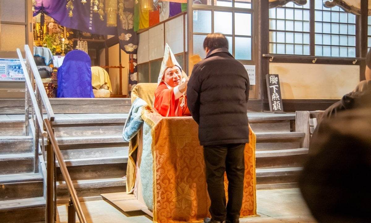 本堂前ではご住職が皆様にあったご祈祷を行い、身体が温まる甘酒の配布などもあります。