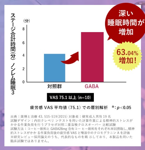 一次的な疲労感やストレスを感じている方や中高年者の深い睡眠を増やし、健やかな睡眠(眠りの深さ)をサポート