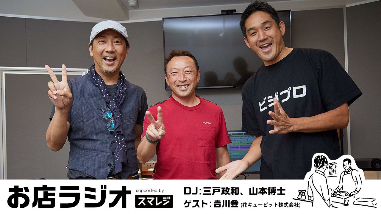 iPadなどのタブレットを利用したクラウドPOSレジ『スマレジ』を展開する株式会社スマレジ(本社:大阪市中央区、代表取締役:山本博士)が提供する『お店ラジオ supported by スマレジ』。次回7月3日(日)と10日(日)の放送に花キューピット株式会社 代表取締役社長 𠮷川登氏が出演いたします。