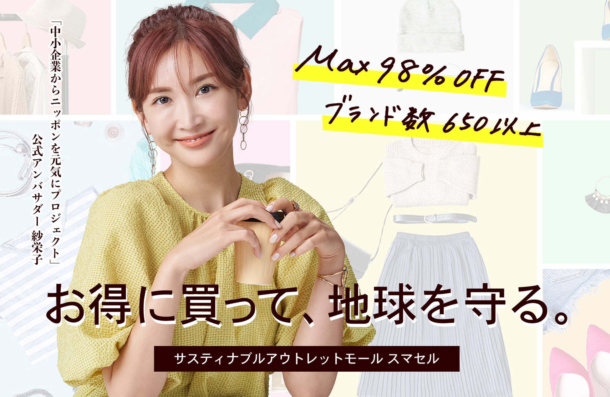 サスティナブルアウトレットモール「SMASELL」は、紗栄子さんが公式アンバサダーの1人を務める『中小企業からニッポンを元気にプロジェクト』第4期に参画