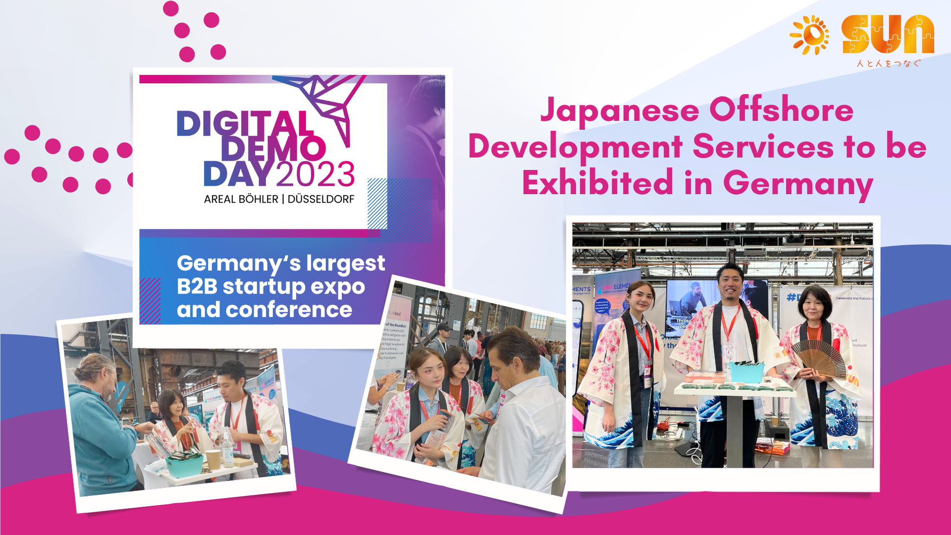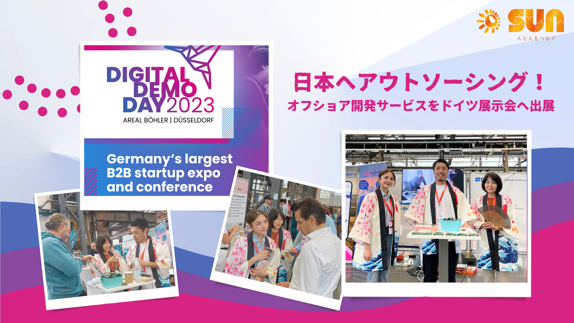 SUN株式会社(本社:東京都港区、代表取締役社長兼CEO:仲宗根俊平、以下SUN)は、2023年8月17日(木)にドイツのドュッセルドルフで開催された展示会「Digital Demo Day 2023」に出展し、日本のオフショア開発サービスをEU圏の企業へプロモーションしました。