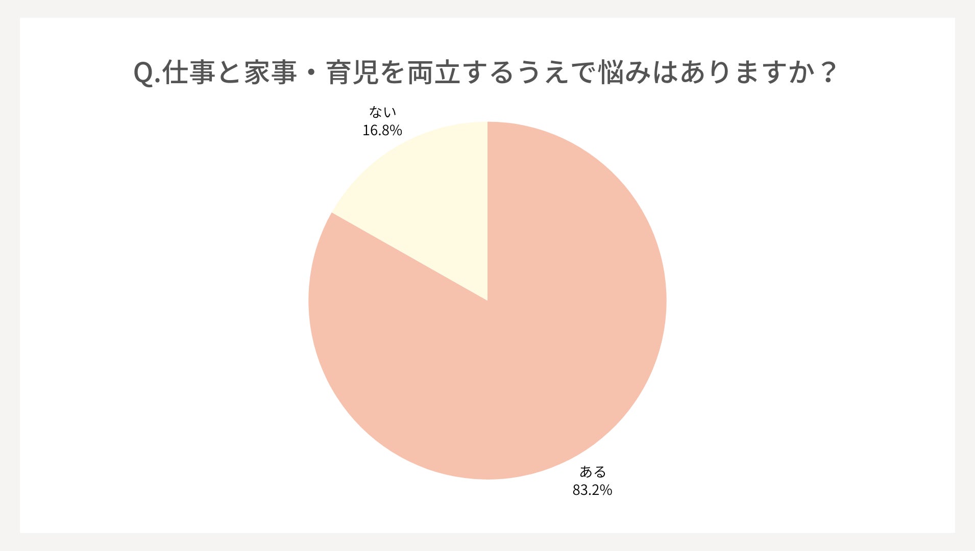 仕事と家事育児を両立するうえで悩みがあるママは83.2%でした。