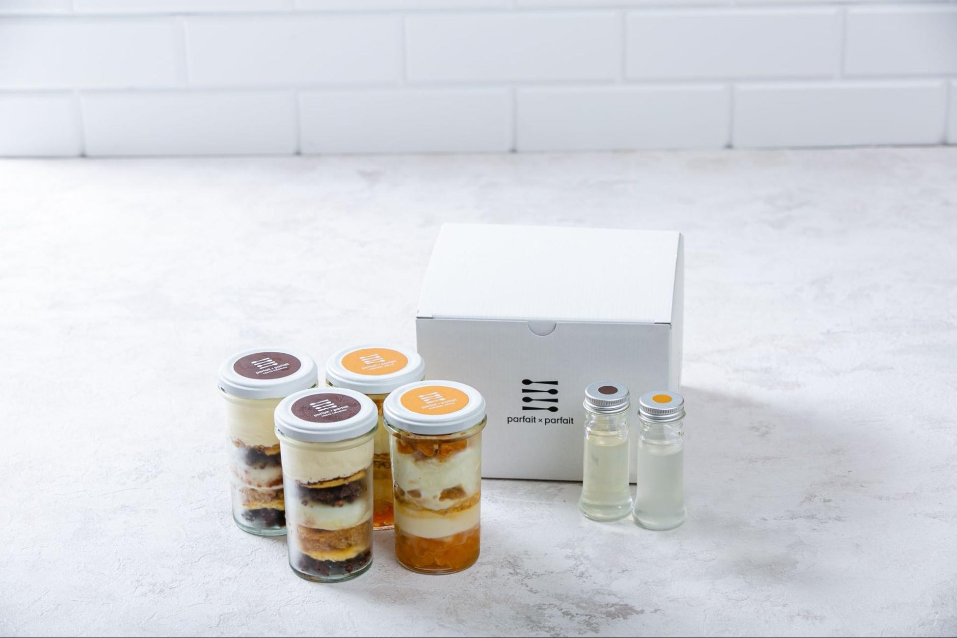 夜パフェブランド『parfait✕parfait』は、冷凍で自宅に届くグラス入りスイーツです。コンセプトはお家でとろける夜パフェを。パフェのためのお酒を効かせた特製の”ほろ酔いジュレ”がセットで届くのが特徴です。まずはそのままパフェを味わい、特製ジュレを”あとがけ”することでほろ酔い気分をお楽しみいただけます。冷凍保存が可能なので、ご自宅で気軽に“ご褒美スイーツ”や“シメパフェ”を楽しめるほか、大切な人への贈り物としてもオススメです。