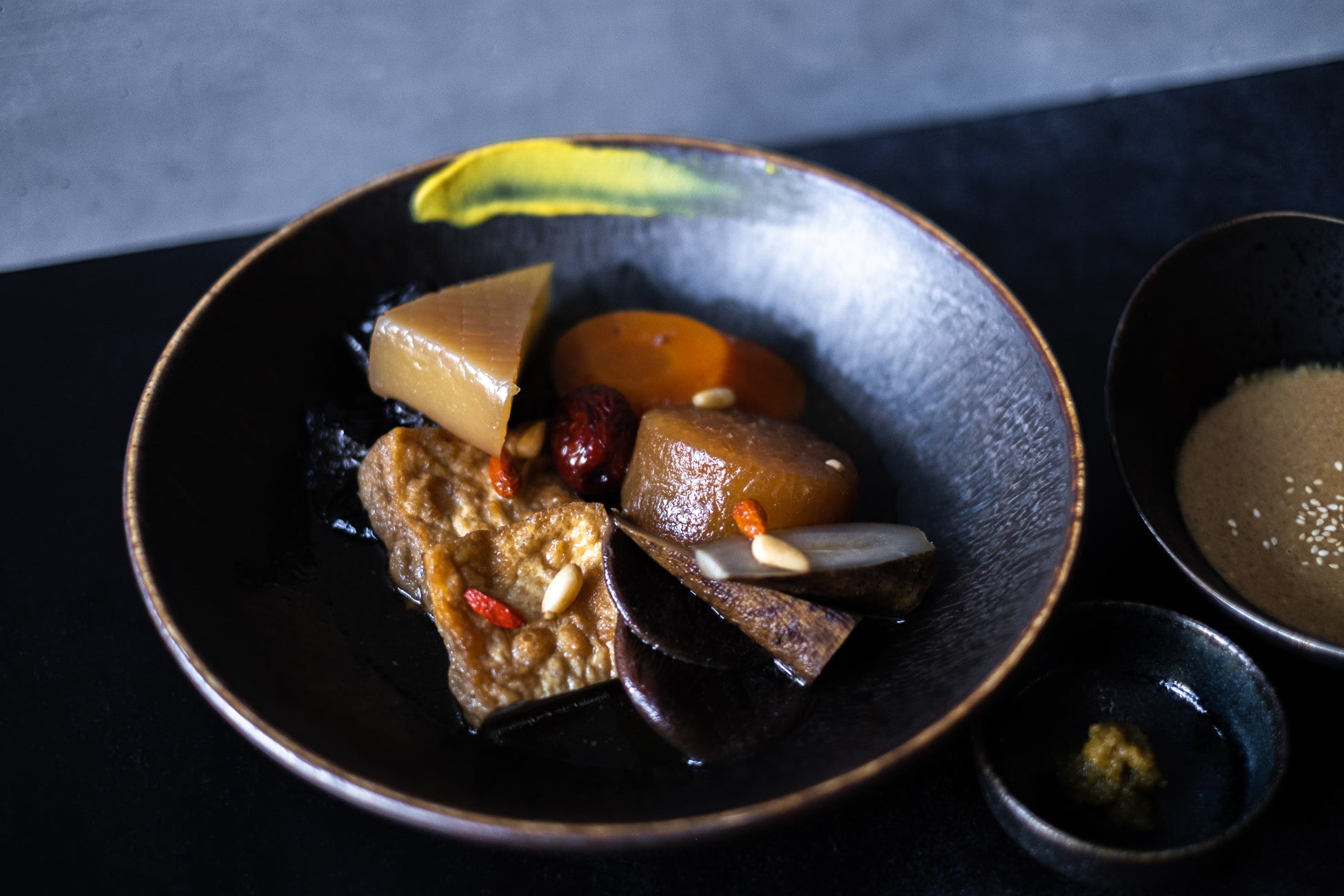 KIGIでは食のサステナビリティ推進および食の多様性を重視する観点から、ヴィーガンメニューを提供しています。「薬膳おでん」では、昆布や椎茸などをベースにした植物性の出汁を使用。ヴィーガン・ノンヴィーガンを問わずお楽しみいただけます。