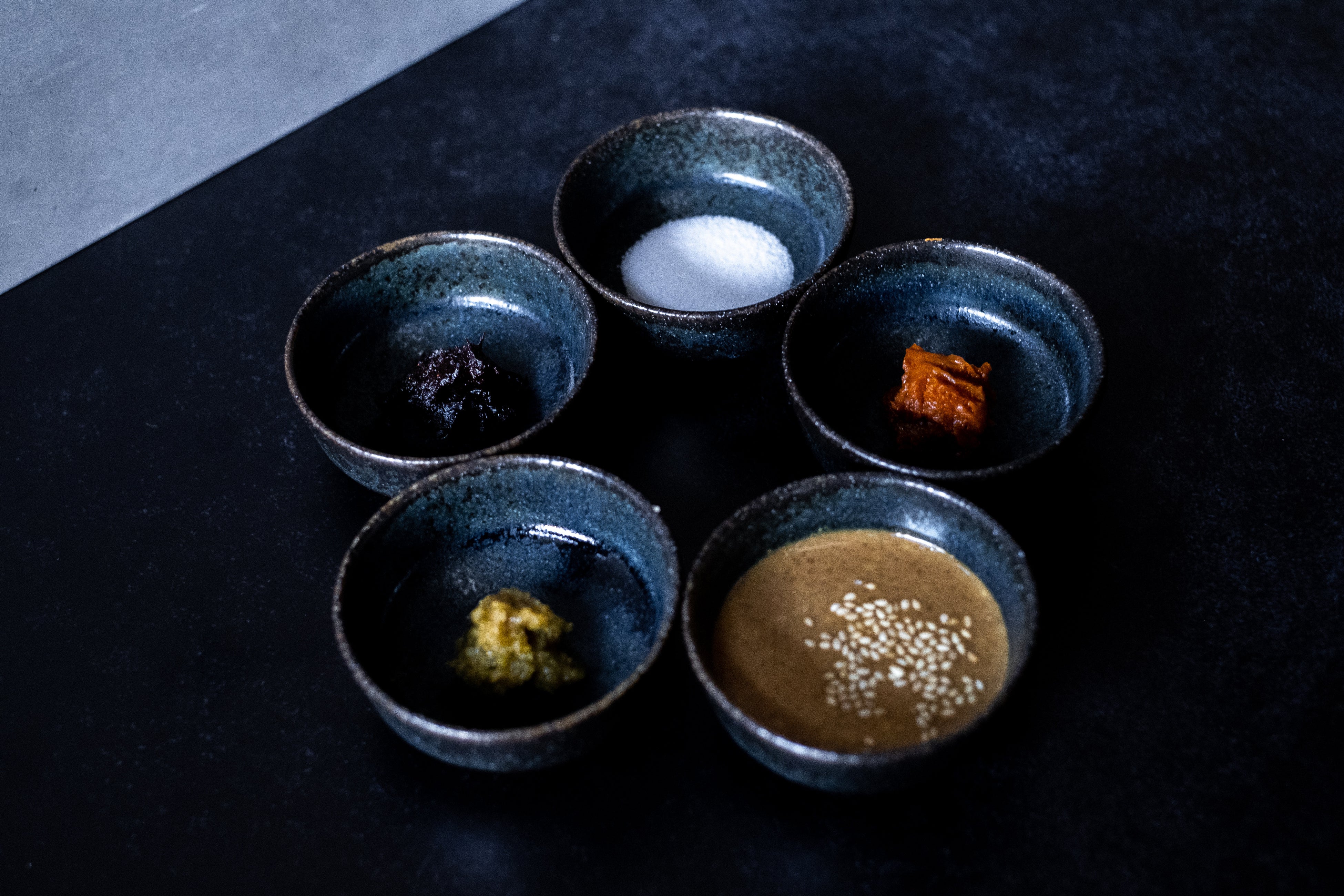 つけだれには潤いの効能があるごまだれと、かぜ予防にも役立つ香りのよい柚子胡椒をご用意しています。