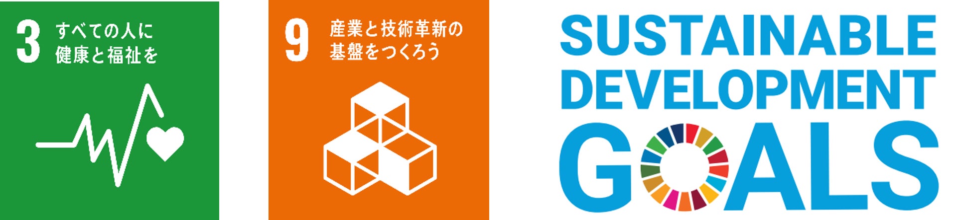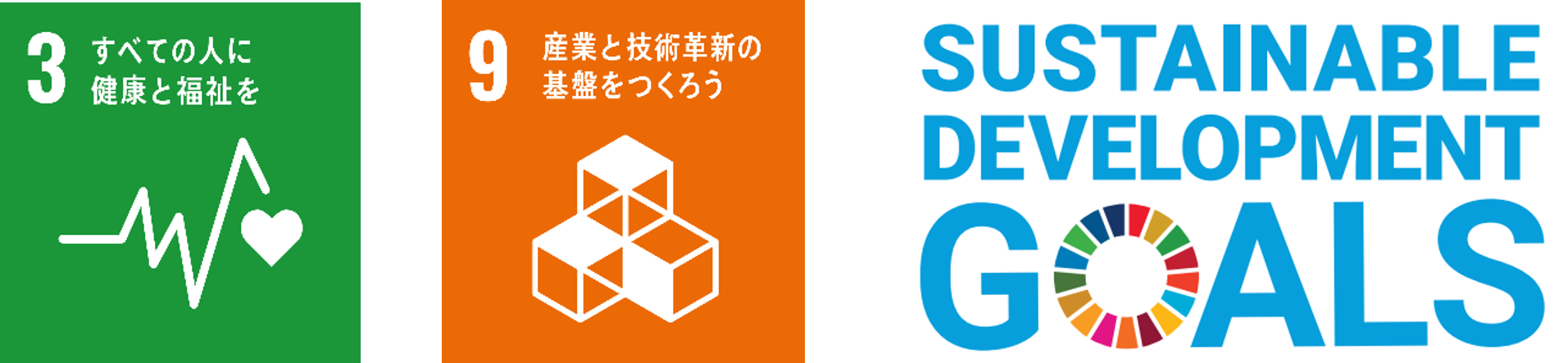 また、持続可能な開発目標(SDGs)としても「3.すべての人に健康と福祉を」「9.産業と技術革新の基盤をつくろう」を掲げ、事業を通じて貢献してまいります。
