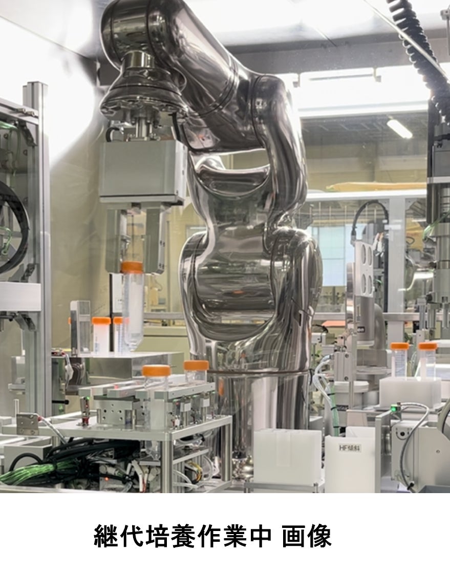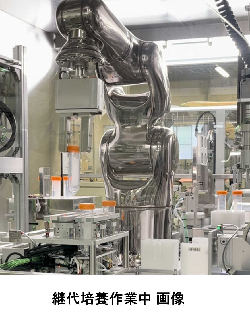 培養ロボットは、細胞培養プロセスを自動化することにより、細胞培養時の汚染リスクや作業者によるヒューマンエラーを最小限にすることが可能となり、初代培養から継代培養まで培養工程の一連の流れを自動制御で運用が可能となる国内初の装置です。国内外の医療機関や再生医療事業者に提供することを目指し、開発を進めてまいります。