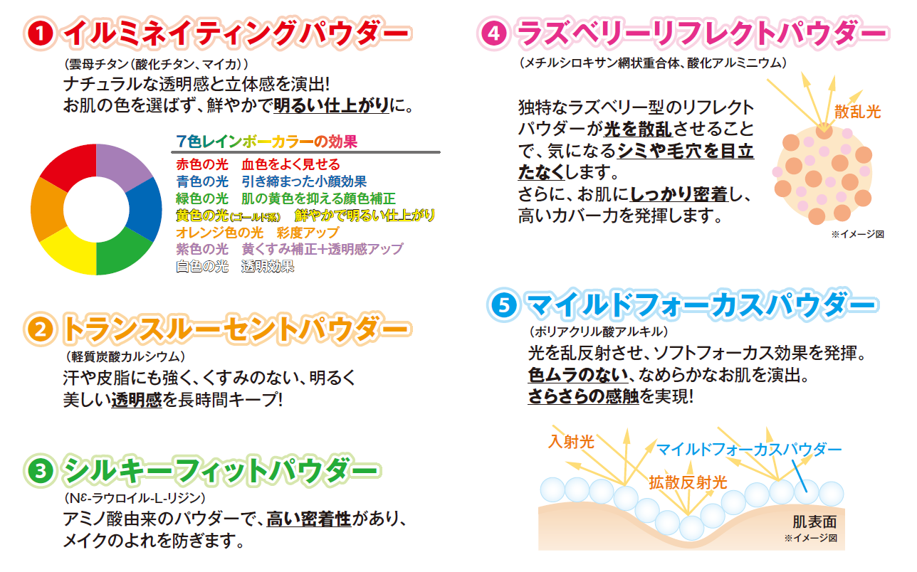 クリスタルジェミー独自の5つの美肌パウダーを配合。