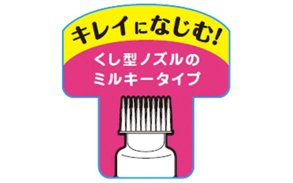くし型ノズルのミルキータイプで、後頭部などもとかす感覚で簡単に染められます。また、大容量なのでロングヘアでも1箱で染められます。