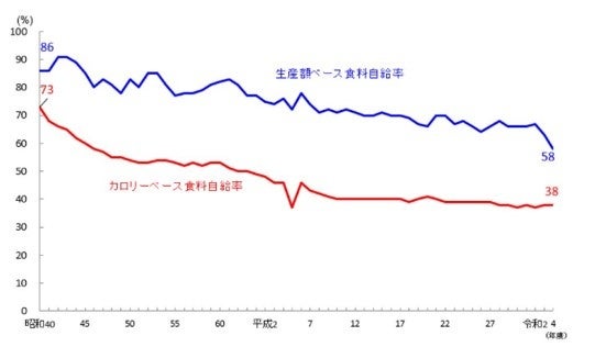 引用:農林水産省 食料自給率の推移