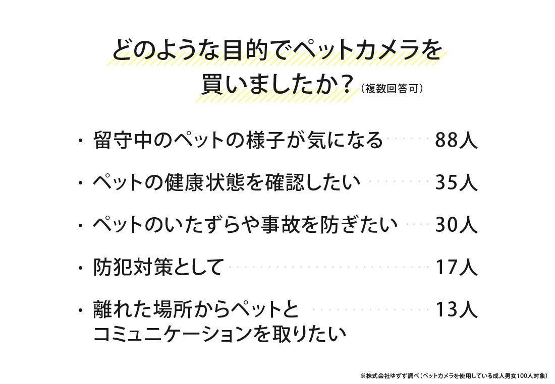 アンケートの結果、ペットの様子が確認できるので安心という意見が目立ちました。
