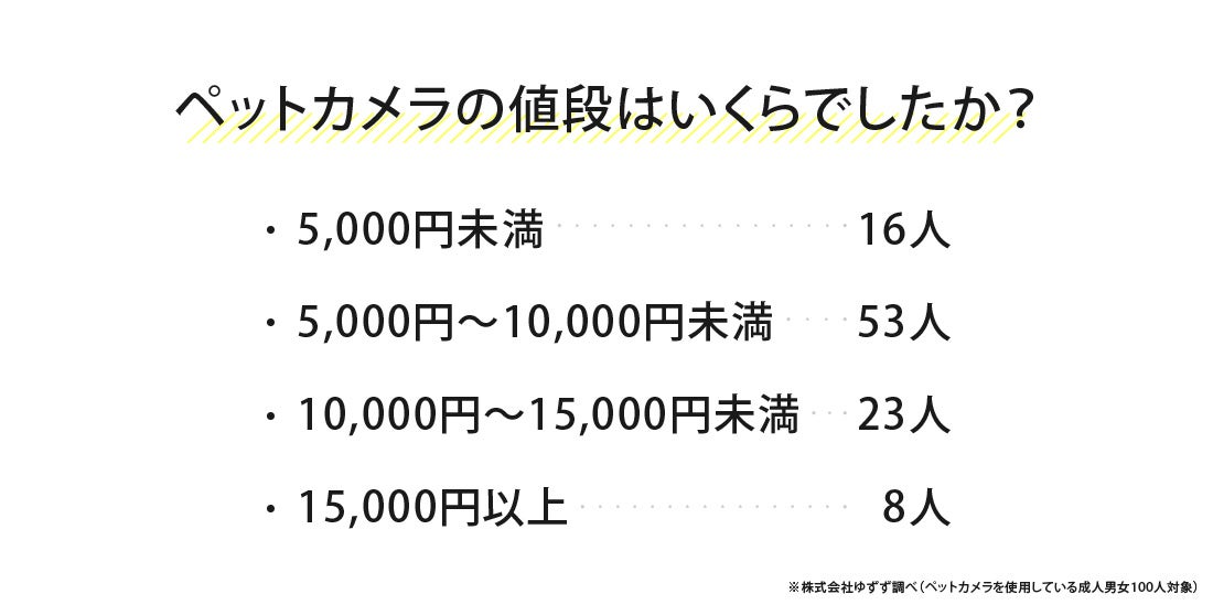 アンケートの結果、10,000万円前後のペットカメラを利用している飼い主が多いようです。