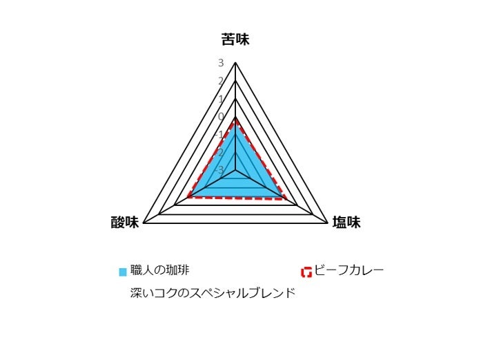 ※各レーダーチャートは、味を数値化することができる味覚センサーを活用して、コーヒーと食べ物を解析した結果です。