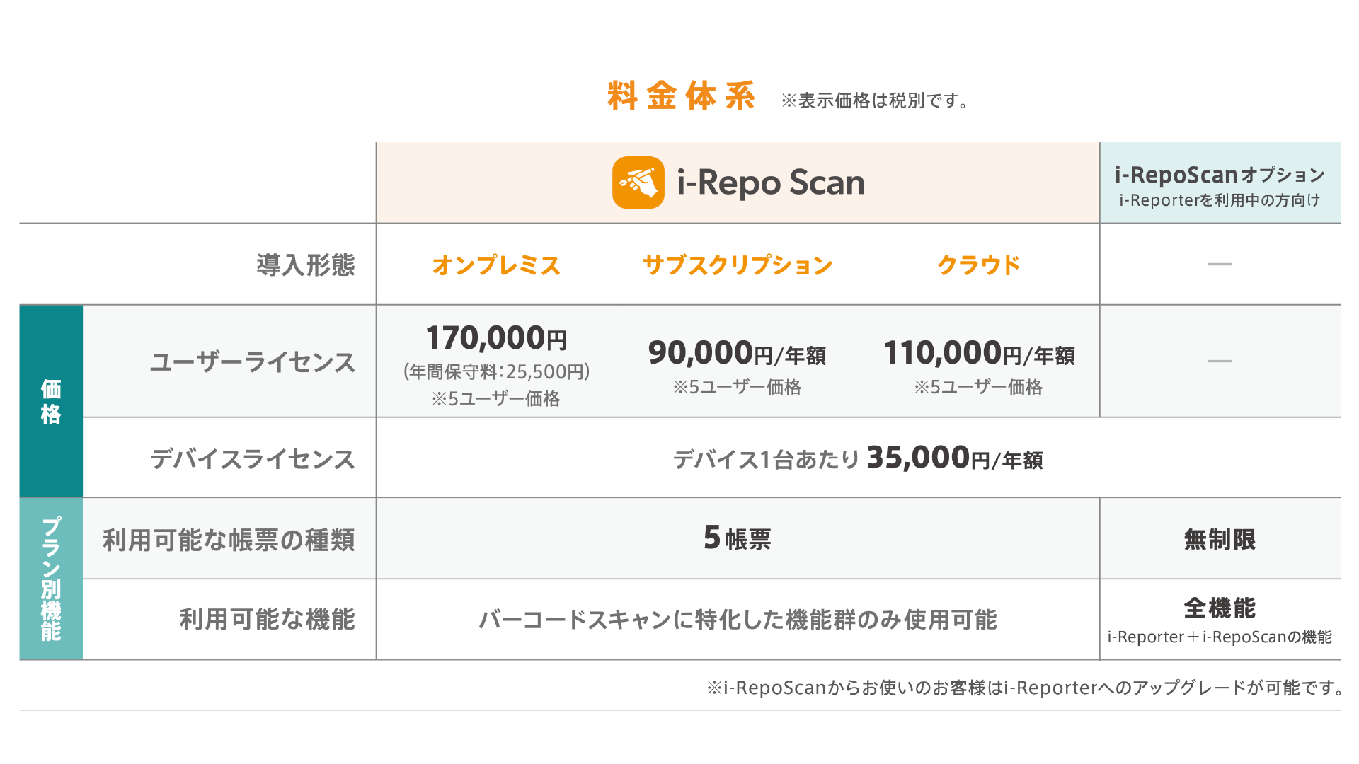 そこで、頂いた声を元に、専用版とも言える新しい利用プラン『i-Repo Scan』をご用意いたしました。