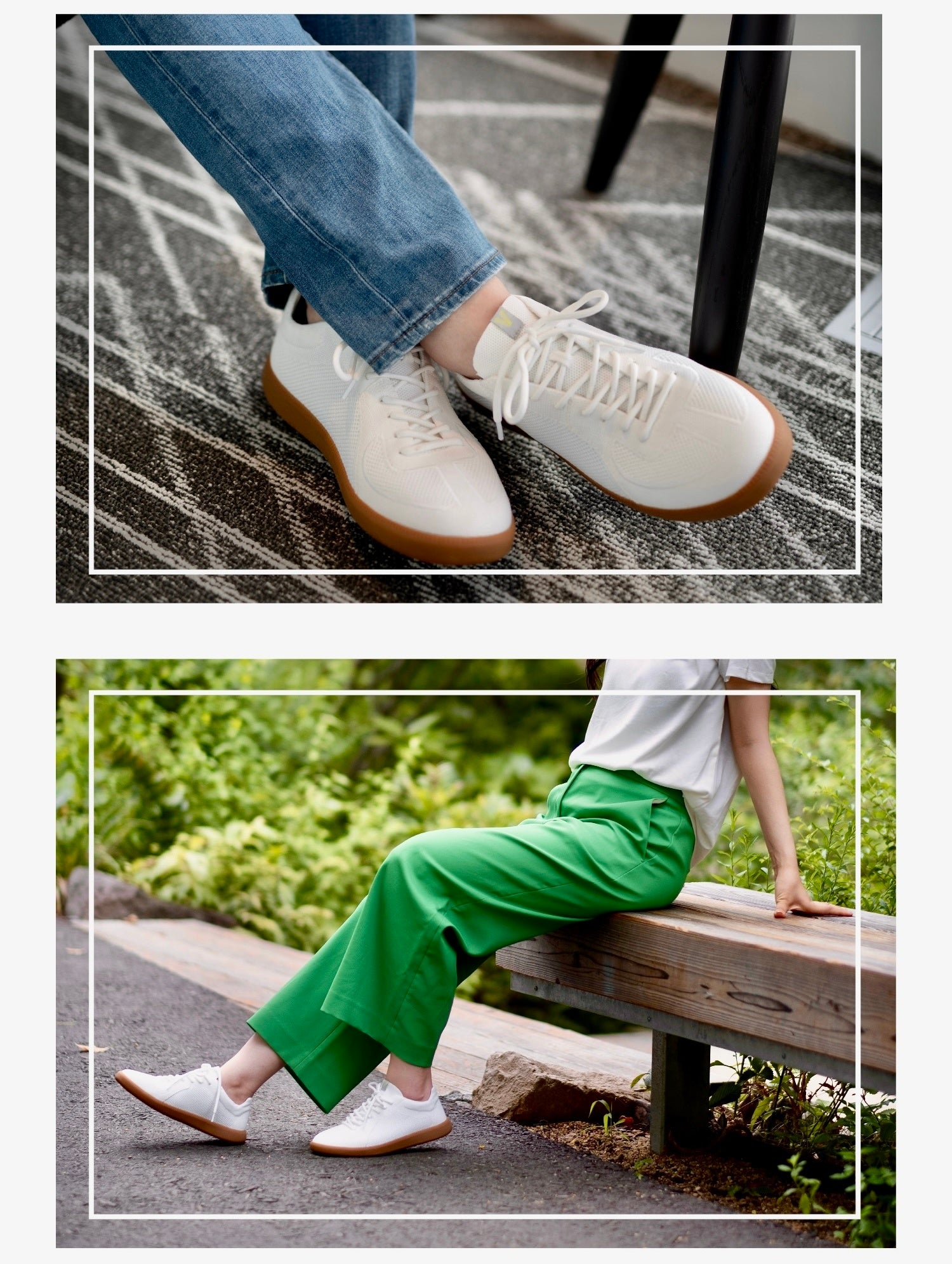 服装を選ばないシンプルなデザインと機能性は、メーカーのフラッグシップシューズであるレザースニーカーを踏襲しています。