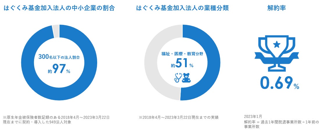 「はぐくみ基金」は、福祉・医療従事者など人々の生命と社会生活を支える方々が、着実に将来の安心を手に入れられるよう老後の資産形成をサポートするべく、2018年4月に設立された新しい企業年金制度(確定給付企業年金)です。保育・介護等を含めた計6の業界団体から推奨基金として認定されているほか、大手地方銀行を含む金融機関との業務提携が進んでおり、基金設立後わずか5年間で、加入事業所数1,321、加入者数が約25倍の44,043人(2023年6月末現在)と、急増しています。