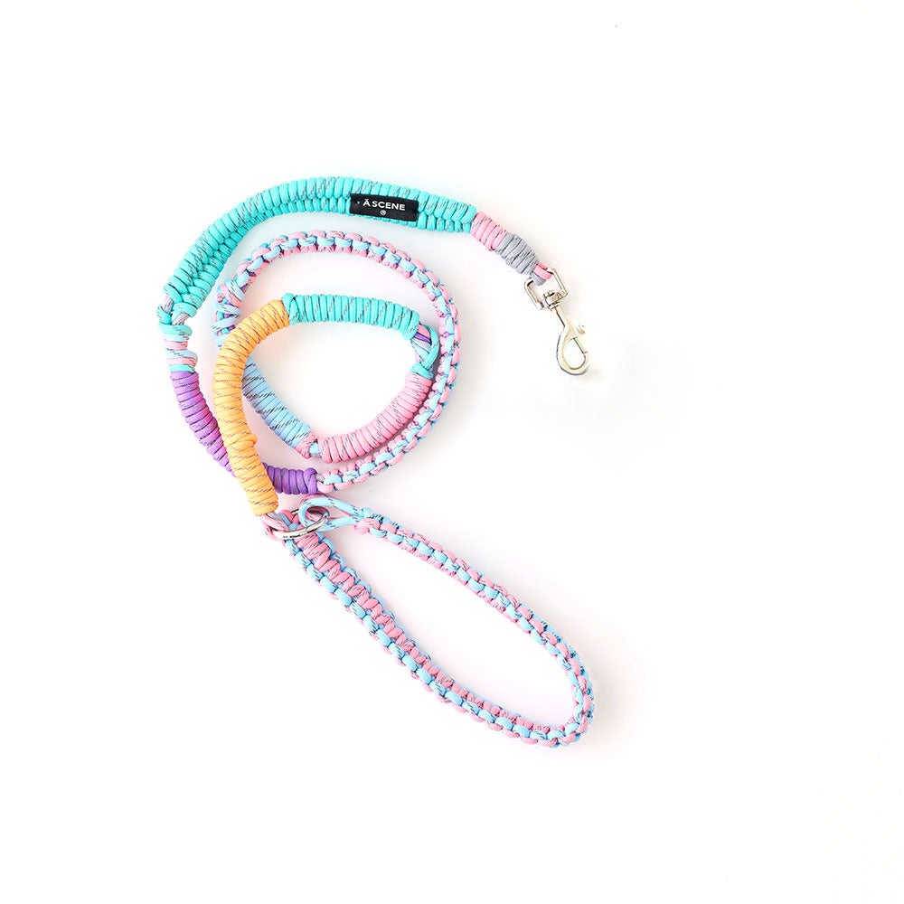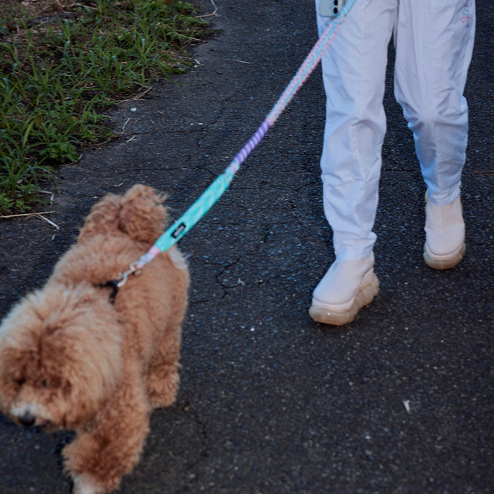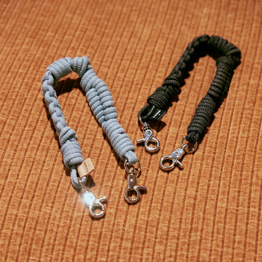 カラーはシンプルな「black」、遊び心のある「unicorn」の2色展開。それぞれ異なる色合いのパラコードを丁寧に編み込み、ペットとの日常に程よいアクセントをプラス。同シリーズの「Design paracord shoulder/stgrap/mini strap」と合わせれば、ペットとさりげないリンクを楽しめます。毎日の散歩をおしゃれに楽しみたい方の現代的な遊び心ある逸品です。