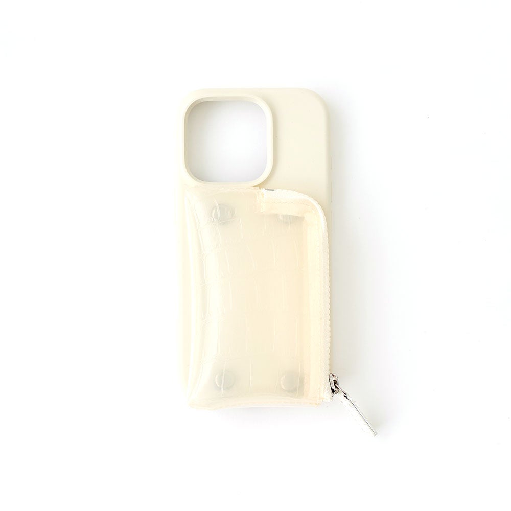 A SCENEから初となるシリコンケースが登場。マットな質感のシリコンに、クリアのクロコポケットを組み合わせたリュクスなデザイン。