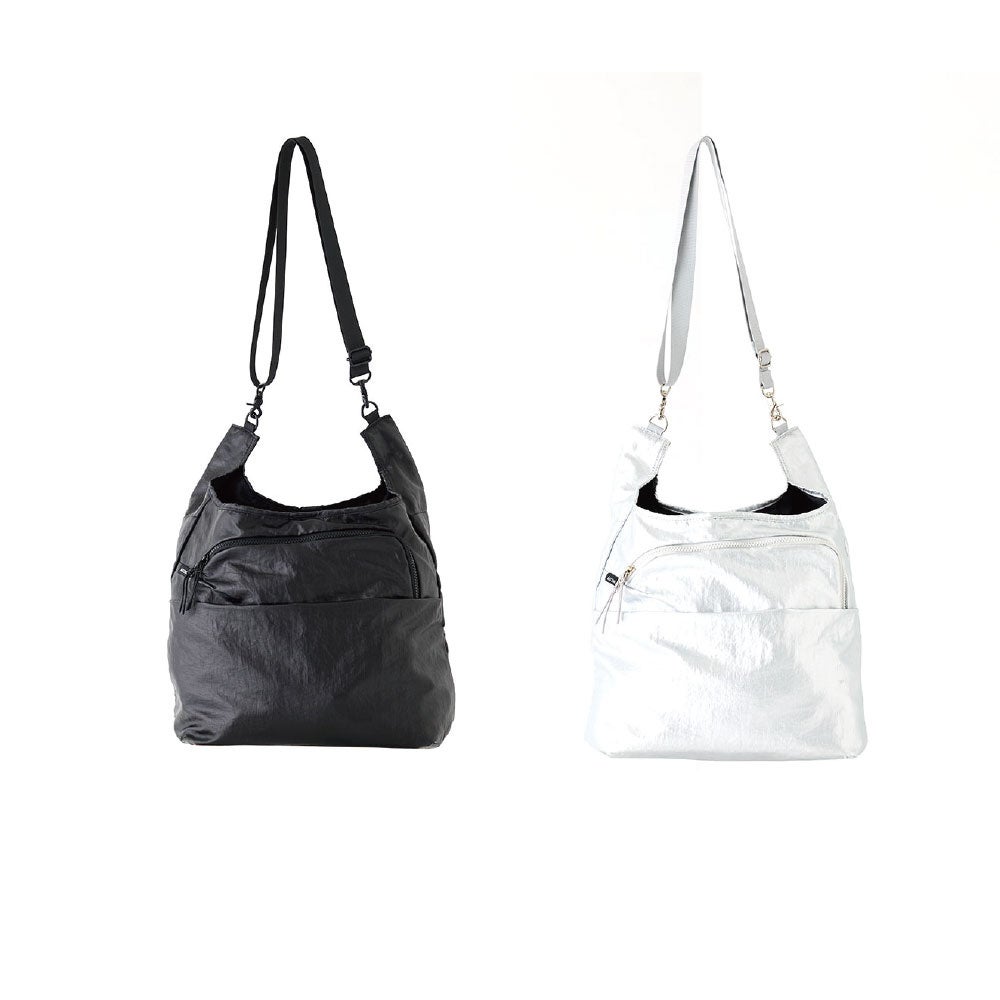 軽やかな光沢と扱いやすさを兼ね備え、必需品をすっきり収納できます。ウエスト・ショルダー・クロスボディの3WAY仕様で、タウンからトラベルまで幅広く活躍。フロントのロゴがさりげないアクセントに。