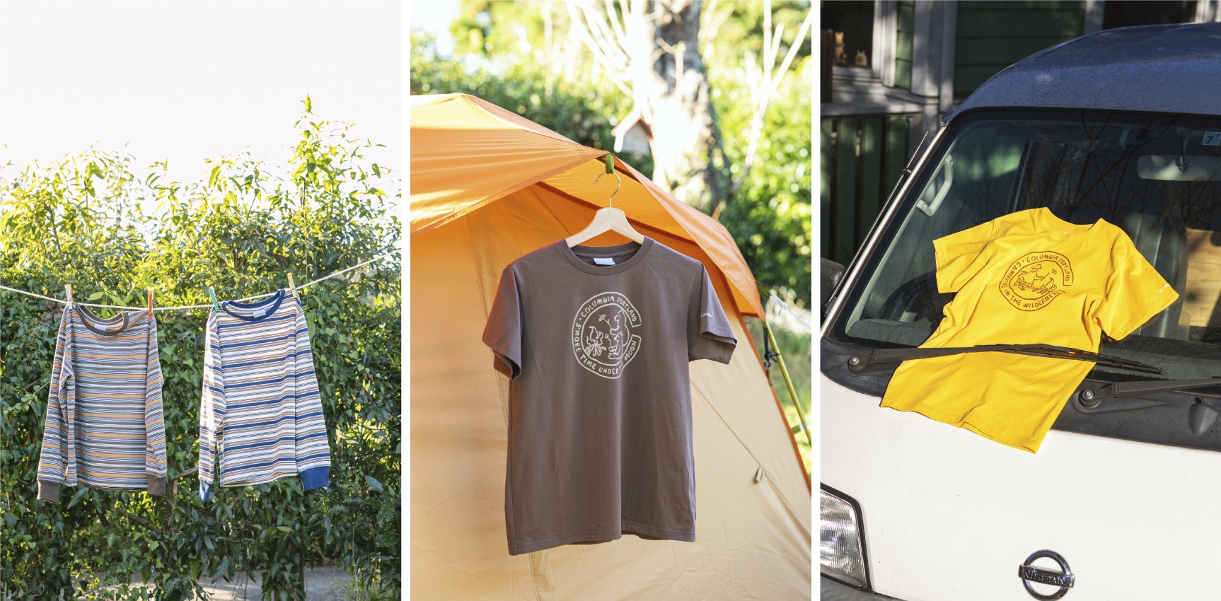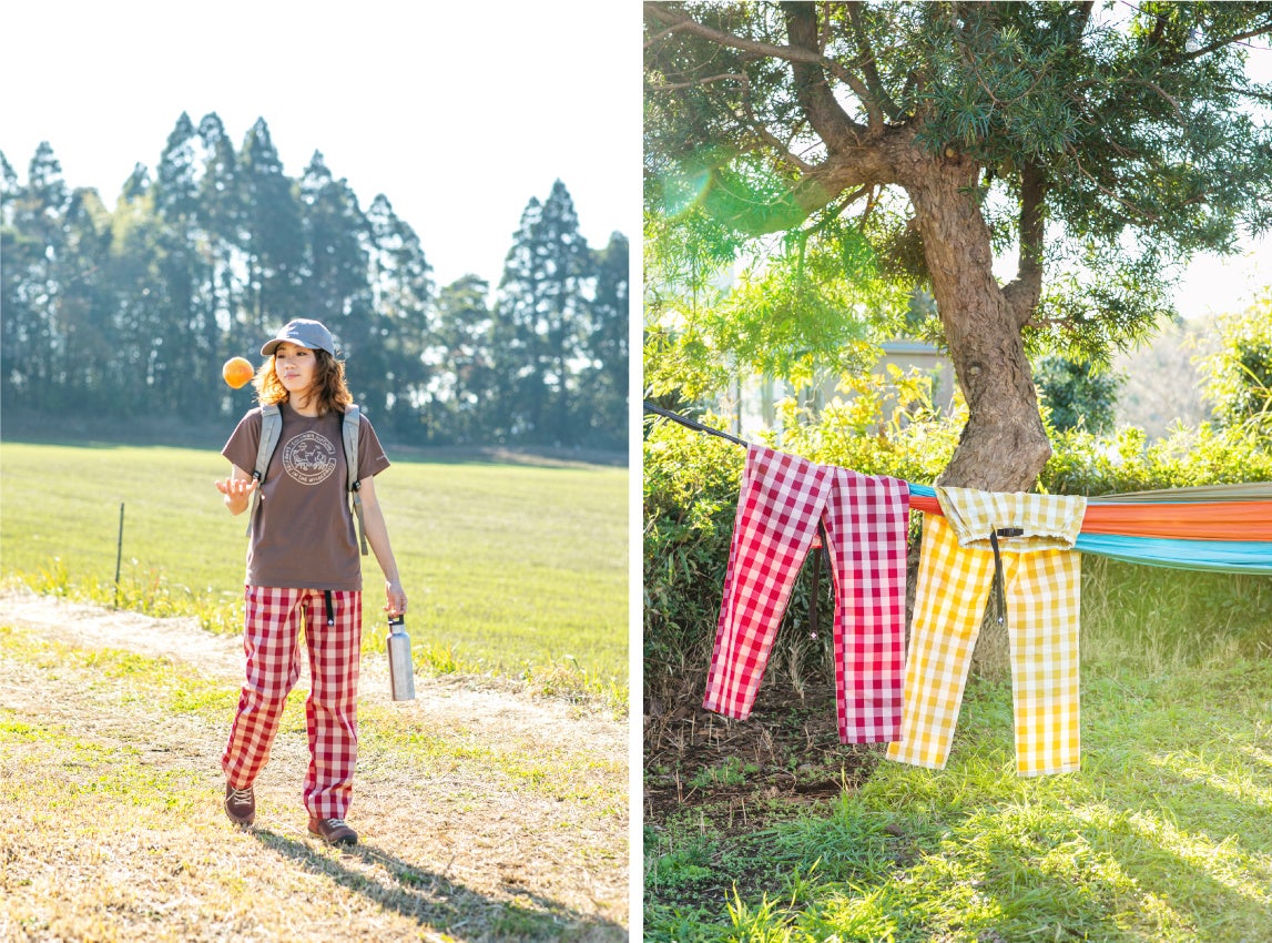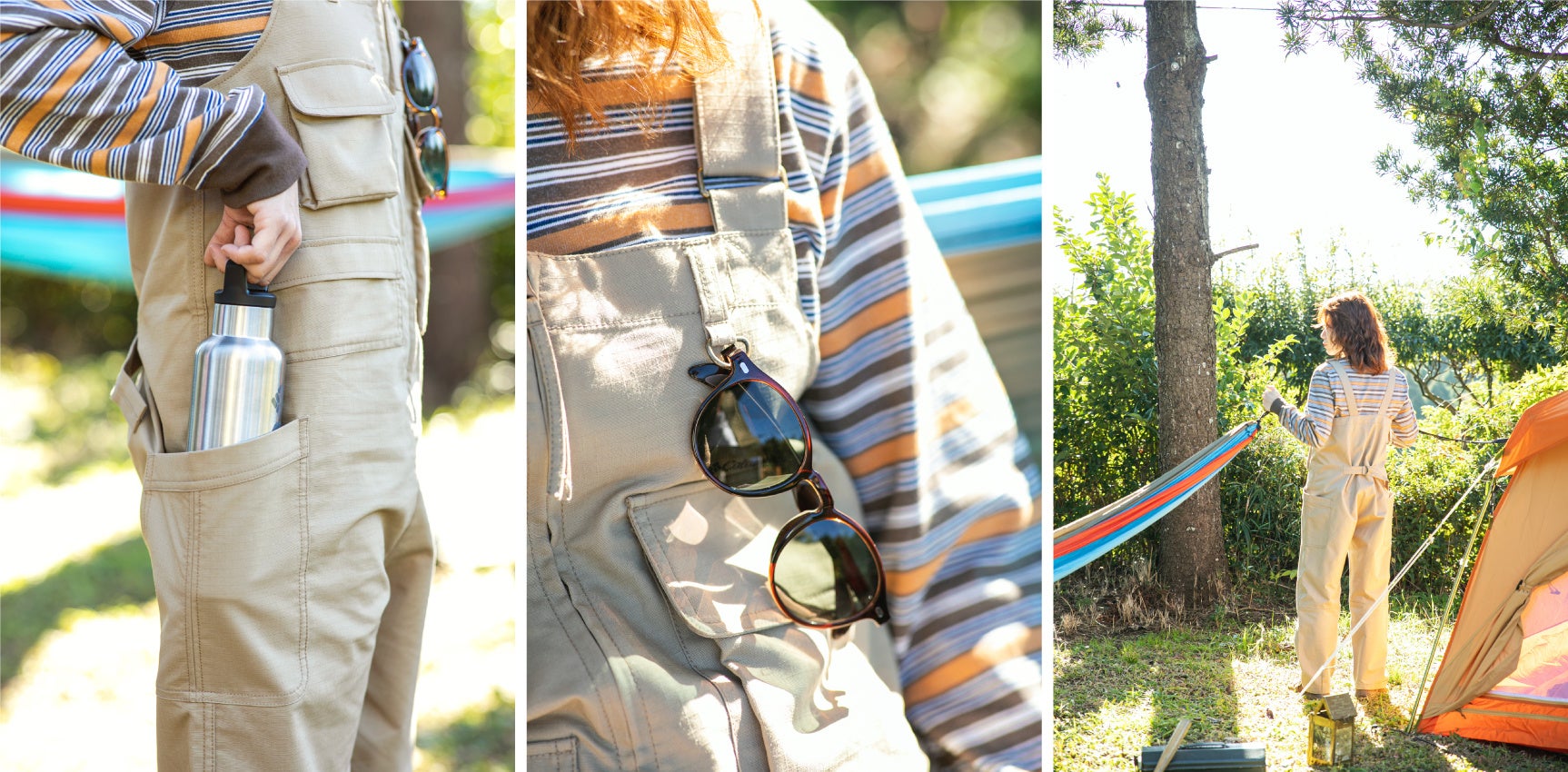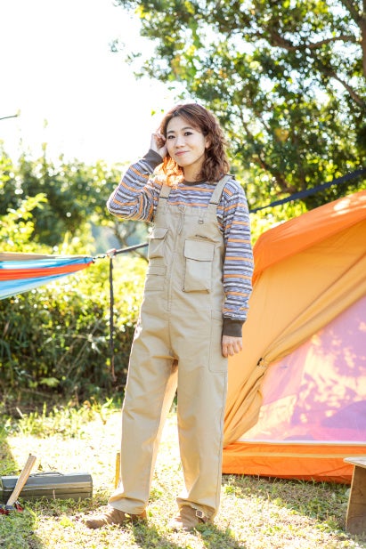 はじめての春夏キャンプコレクションは、これまで発表してきたヴィンテージライクでYURIEさんらしいテイストを落とし込んだデザインや色味はそのままに、春夏の軽やかでシンプルなアイテム構成でありながら、コロンビアらしい機能性の高いコレクションになっています。2シーズンにわたってヒット商品となり、今やYURIE×コロンビアのコラボレーションアイテムの代名詞となっているオリジナルのキャンプ向けオーバーオールは、コロンビア独自の撥水機能オムニシールドに、分子レベルでの撥油機能を追加搭載して春夏向けにアップデート。また、同じ機能を搭載した、ストレッチ性が高くキャンプや軽ハイクでも活躍するアメリカンポップなチェック柄パンツなどを提案します。他にも古着のようなレトロなボーダーカットソーや、コラボレーションでははじめてキッズサイズまで展開し、親子で着用できるイラストが可愛いTシャツなどを取り揃えたコレクションとなっています。