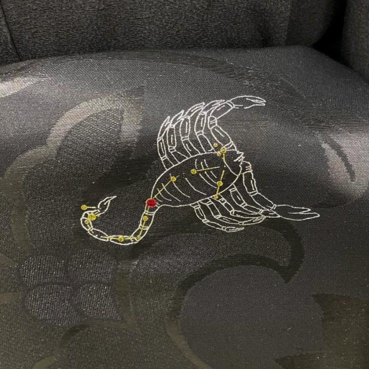リユース着物専門店「たんす屋」のSDGsへの取り組みの1つとなる黒染め着物ブランド「キモノアール」から、「12星座の名古屋帯」が試験的に販売。各星座ごとに1枚のみ制作の希少品です。本商品は、喪服で用いる黒の喪帯「黒共帯」に対して、職人が星座デザインで金彩、銀彩の型染めを施しています。さらにスワロフスキーを一粒アクセントに施し、黒地に上品にキラキラと映える帯ができあがりました。キモノアール着物との相性も良いので、ぜひお試しください。
