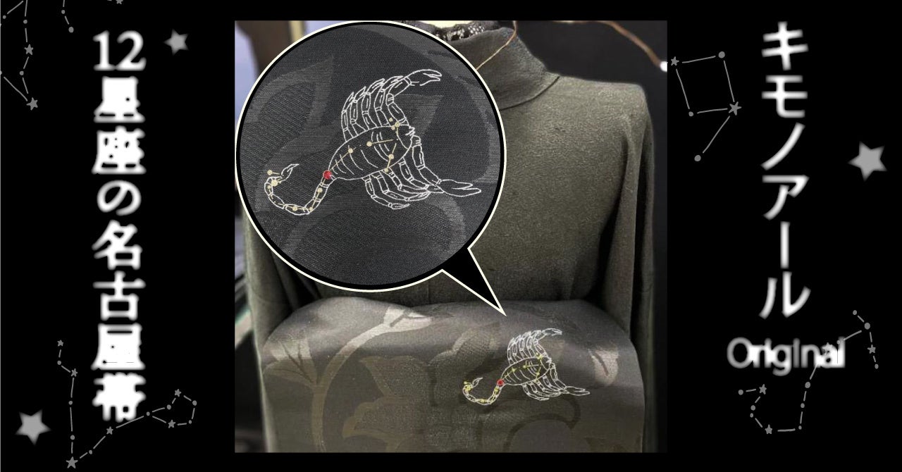 黒染め着物ブランド「KimoNoir(キモノアール)」から「12星座の名古屋帯」が試験販売。各星座につき一点のみの限定品です。