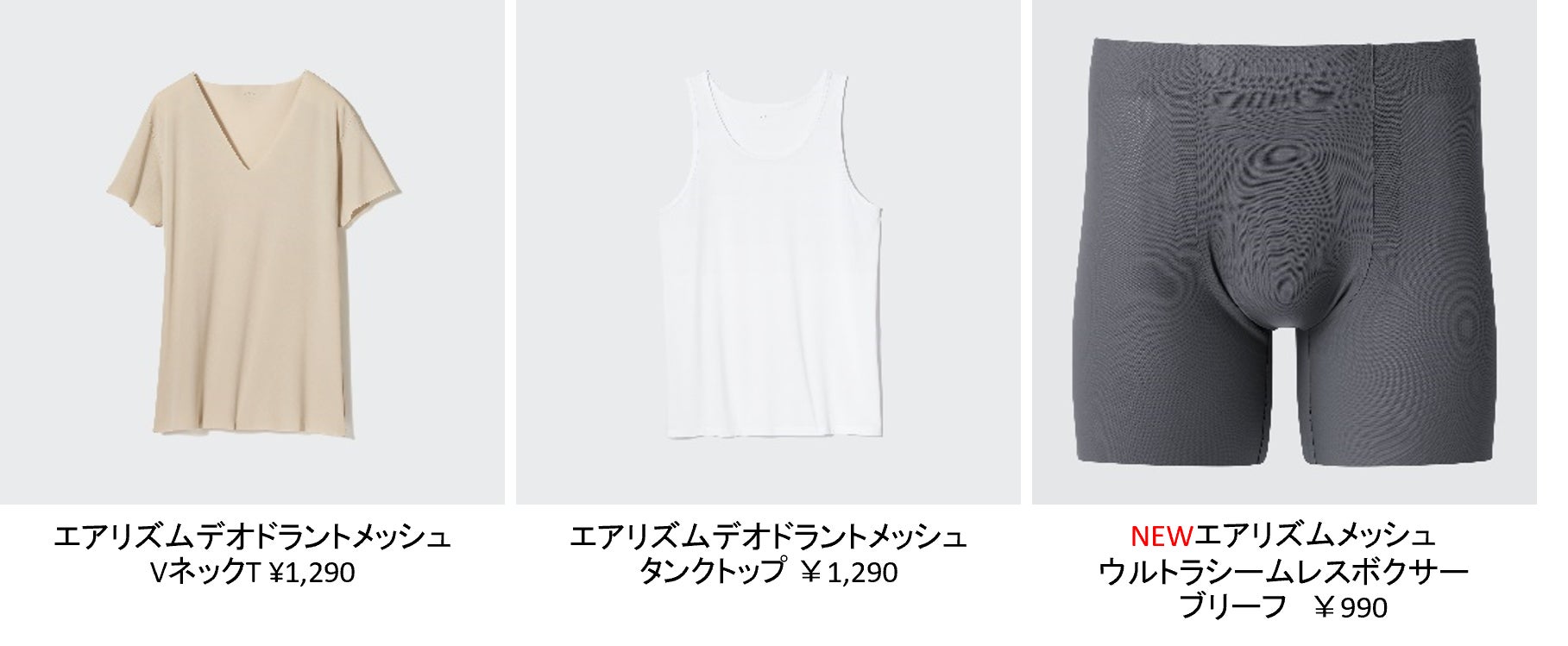 素材を刷新し、「エアリズムデオドラントメッシュ」として消臭機能をアップデート。抜群の通気性で、汗の主成分であるアンモニアに対する消臭力もアップしました。