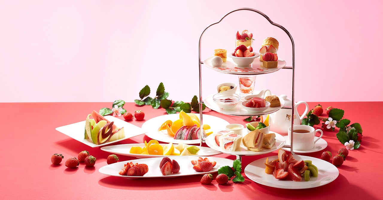 アフタヌーンティーも苺を中心に仕立てています。苺のフルーツサンドウィッチや苺寒天、苺のグラスケーキ、苺のマリトッツォ、タルト、苺パルフェなど。通常はいろいろなフルーツで仕立てているものも、今回は苺を存分に楽しんでいただけるようにしています。ぜひこの苺本番のこの機会にタカノフルーツティアラの苺づくしのメニューを観て食べて楽しんでください。