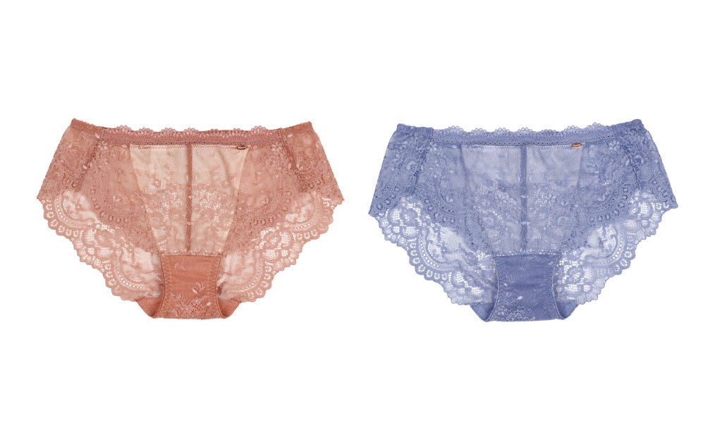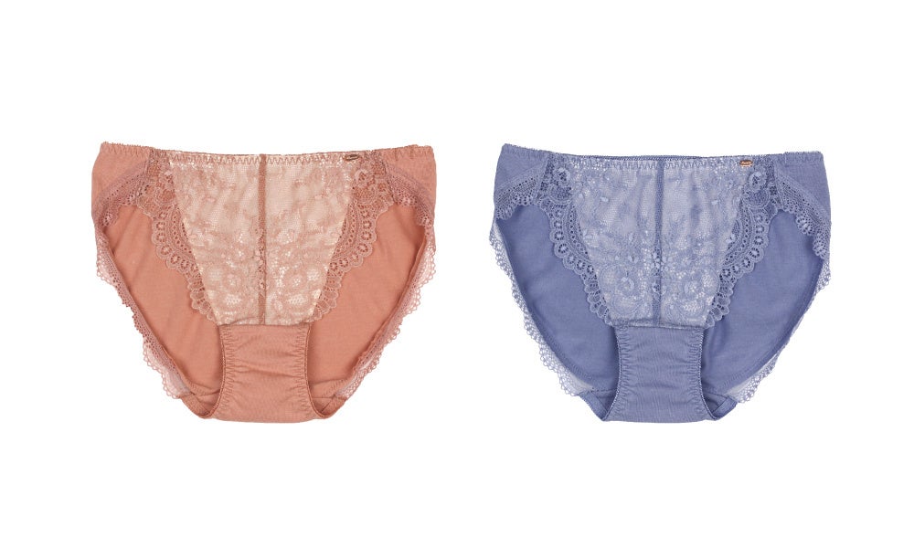 パフュームブラとセットで楽しめるショーツは、お尻をすっぽり包み込んでくれるやさしい穿き心地の「スタンダードショーツ」、お尻をレースで包み込む「総レースショーツ」の2種類を展開。スタンダードショーツは、後身頃・マチに綿95%のチャンドラーマ綿天竺使用のソフトな肌触りで、足口はゴム不使用なので太ももの付け根(鼠径部)を圧迫しない設計。繊細なストレッチラッセルレース使用で、女性らしくエレガントな見た目も追求しています。