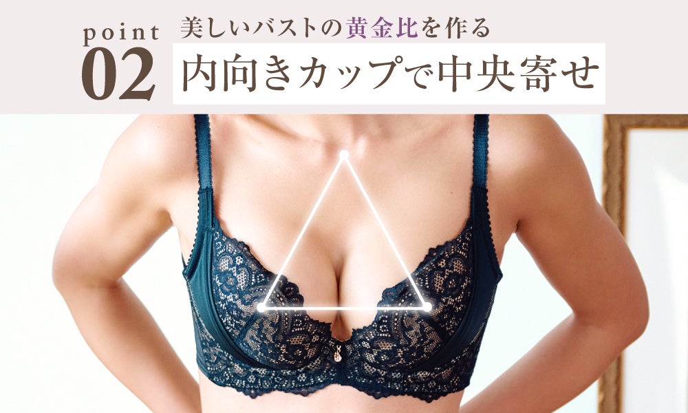 設計ポイント2:胸を中央に寄せる内向きカップ