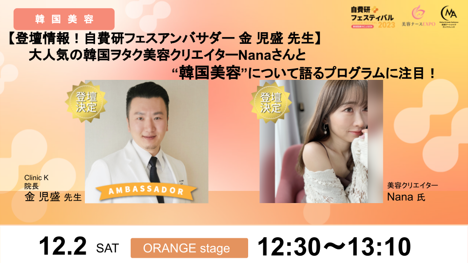 自費研フェス 韓国美容アンバサダーを務める Clinic K 院長 金 児盛 先生がプロデュース。みんなが知りたい!注目のプログラム