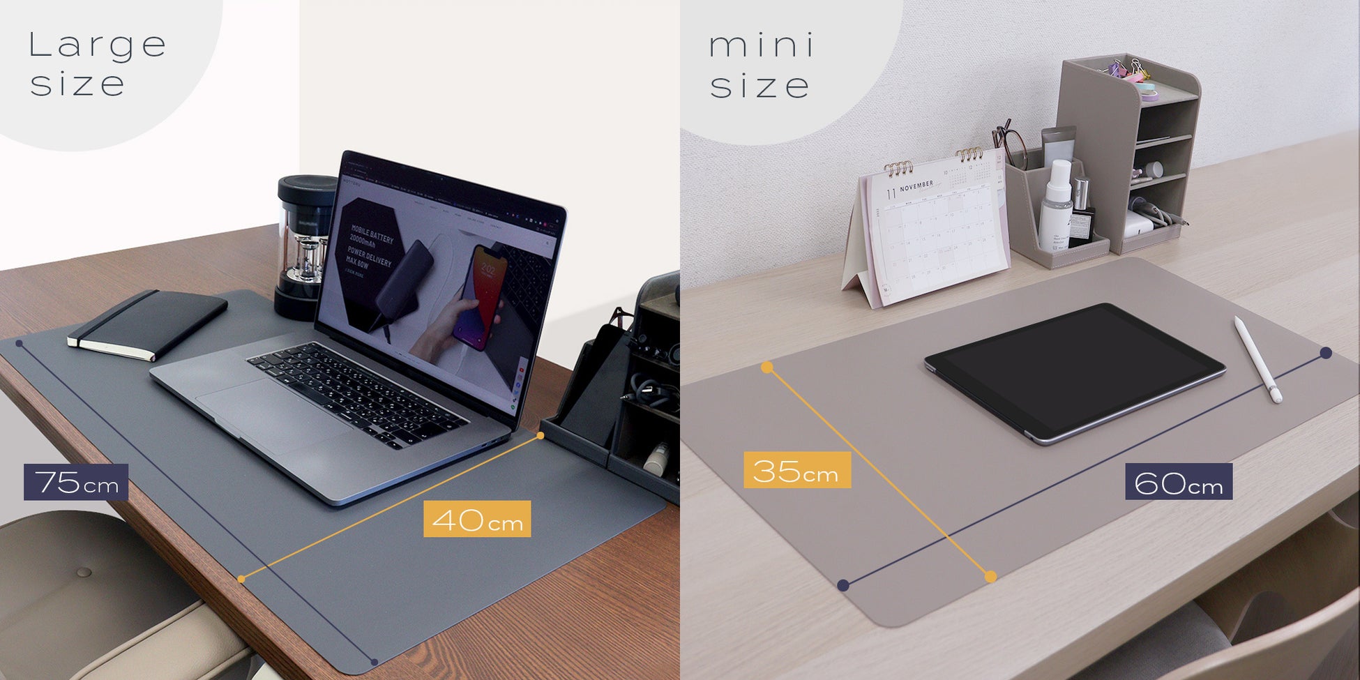 既存商品は大きめの横75cm・縦40cmでしたが、テレワークなどで自宅で仕事をする機会が増え、限られたスペースを有効に活用したいとのニーズに合わせ、miniサイズもご用意しました。