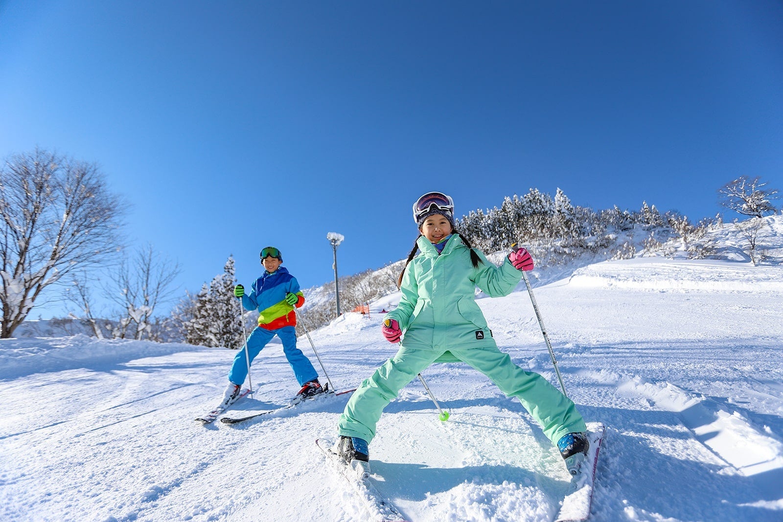 広大なゲレンデには、ワイドな緩斜面が多い初心者コースから、中級者向けの最長滑走距離6,000mのロングランがお楽しみいただけるコースや、上級者向けの自然の地形を活かした急斜面なコースまで、幅広いレベルのコースが用意されています。ご家族連れにも優しい施設が充実しており、キッズパークにはスノーエスカレーターを完備しているため、小さなお子様でも安心して雪遊びをお楽しみいただけます。ゲレンデ内にはレストランやカフェが多数あり、本格的なお食事から、軽食やスイーツまでバラエティ豊かなメニューをご提供しています。ゲレンデ隣接の「舞子高原ホテル」では、天然温泉とオープンジャグジーを完備し、客室からはゲレンデや魚沼連峰の山並みを一望できます。