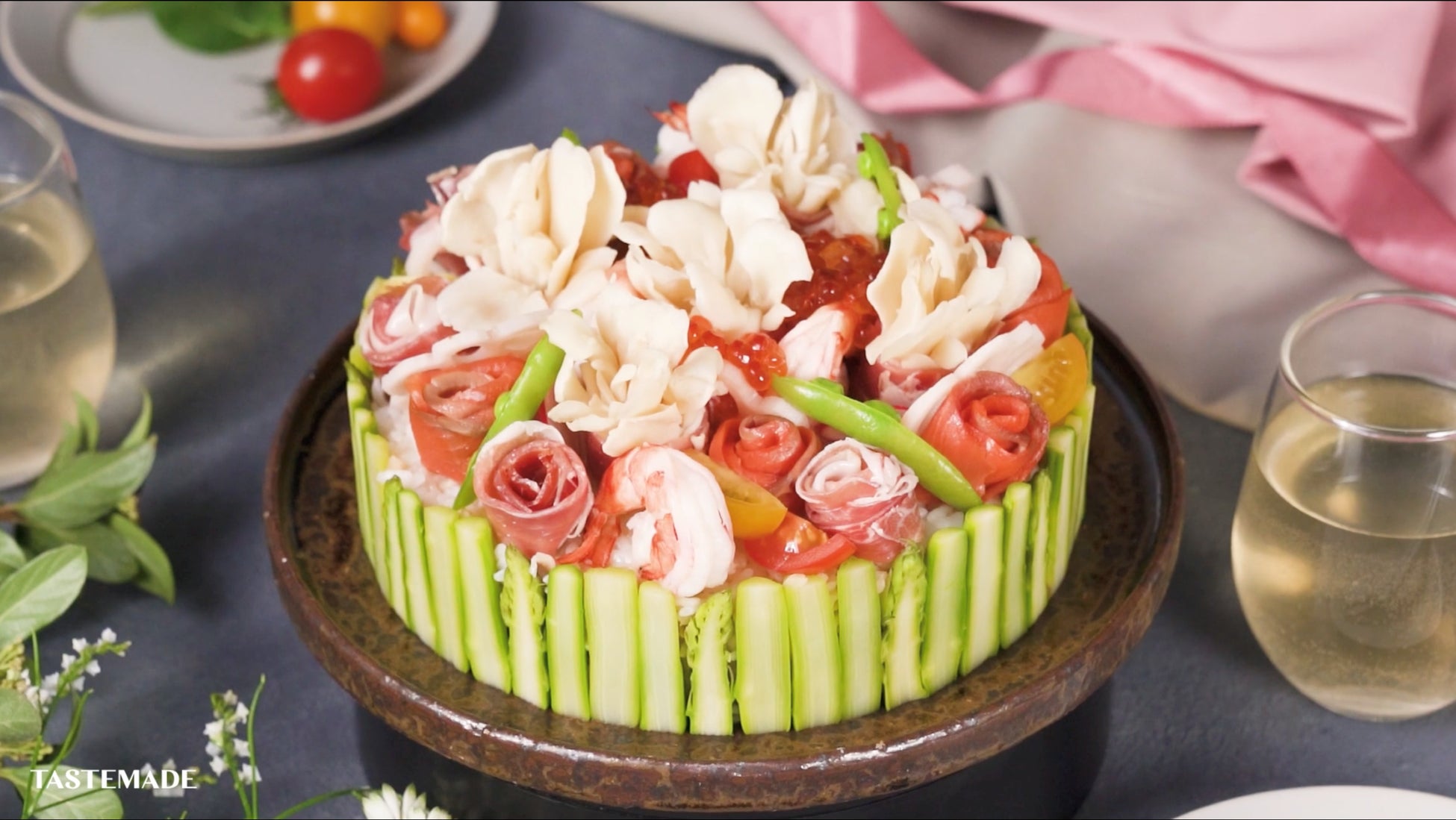 見た目が華やかな「雪国まいたけ極 白」はハレの日を彩るメニューにぴったりです。今回はその白まいたけをたっぷり使った「舞茸たっぷり!花咲く洋風寿司ケーキ」動画の配信を、Tastemade Japan株式会社運営のSNSアカウントにて開始しました。
