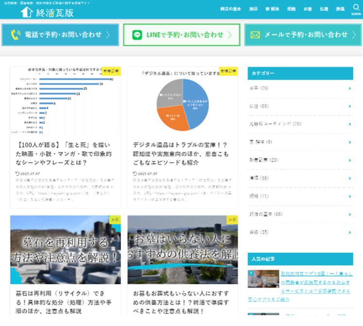 株式会社林商会が運営する「終活瓦版」では生前整理のほか、終活など、特殊清掃士・遺品整理士の経験を基にしたさまざまな情報を発信しています。