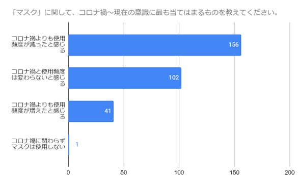 ウイルスに対する恐怖心が薄れたことよりも、「マスクを外せる」環境になったことが、マスク使用が「減った」大きな要因と言えそうです。
