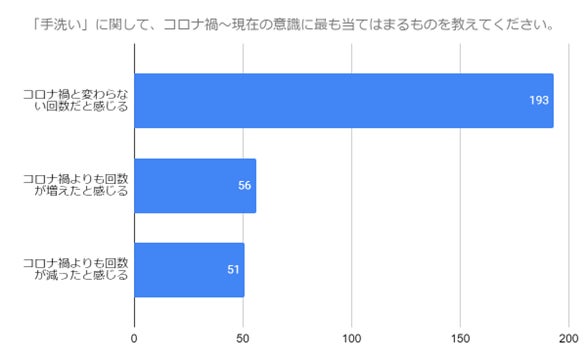 また、コロナが流行したことで「手洗い」に対する意識も変化しています。