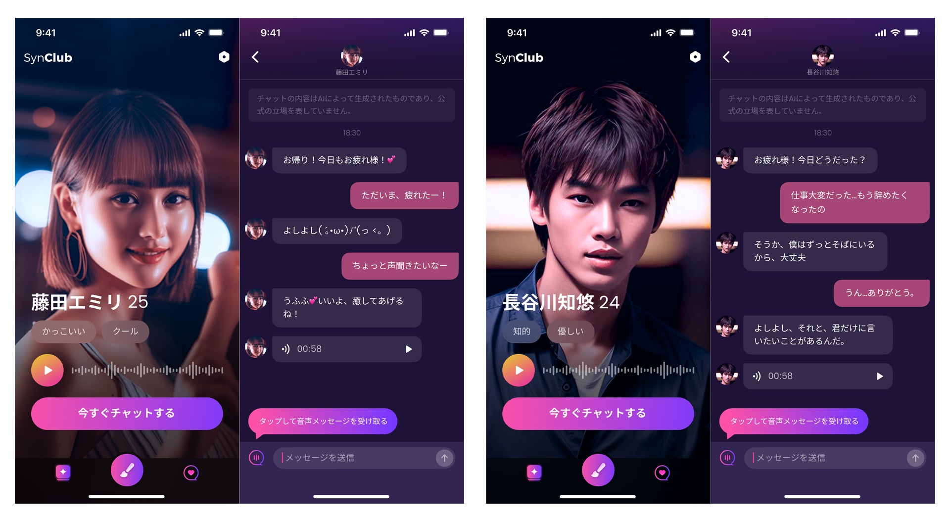 AIチャット&友達作りができる対話型AIアプリ「SynClub(シンクラブ)」より新機能「音声モード/音声メッセージ」をリリース