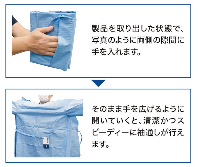 ワンステップで清潔かつスピーディーな袖通しが可能