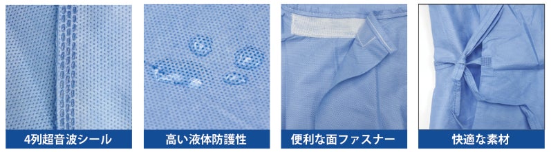 セーフウェア サージカルガウンは、AAMIレベル3適合、高い撥水性能を有するSMSサージカルガウンです。