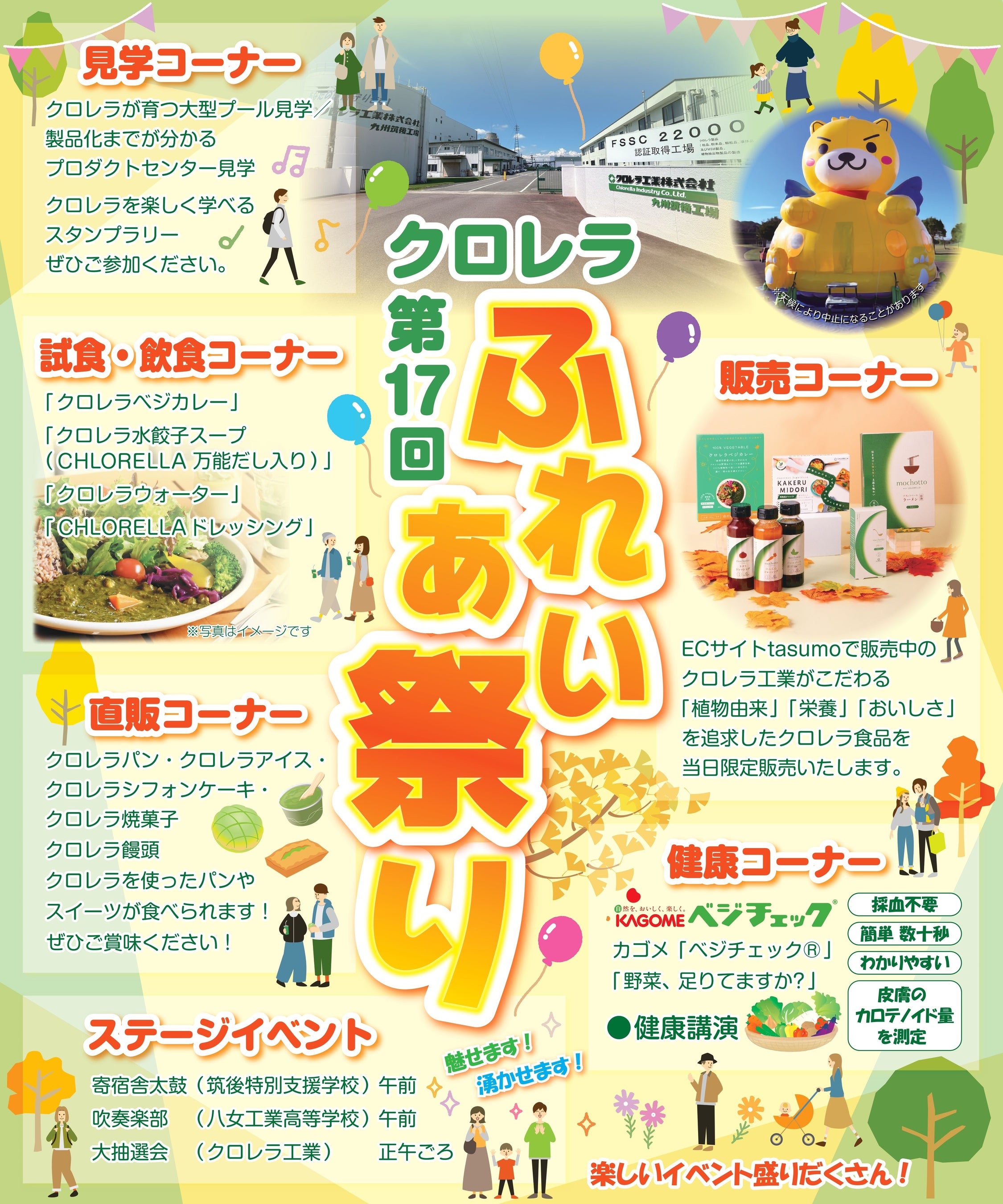 11/8(土) 福岡県 九州筑後工場にて、地域とともに未来を育む「第17回クロレラ・ふれあい祭り」開催!