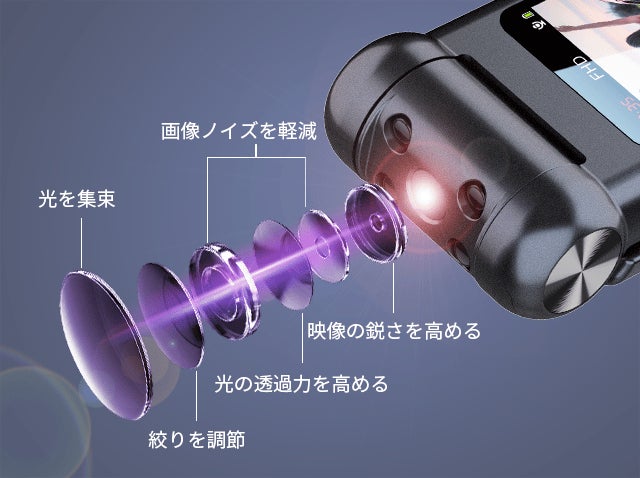 「X5」は硬度が高く、壊れにくい6層の高感度レンズを搭載しており、カメラ内で電子的に光を増幅させ、映像をより鮮やかに、より鮮明に記録することができます。
