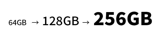 今回のプロジェクトはありふれた64GBと128GBのほか、なんと256GBの超大ストレージ搭載のバージョンも用意しております。用途に合わせてお選びいただけます。