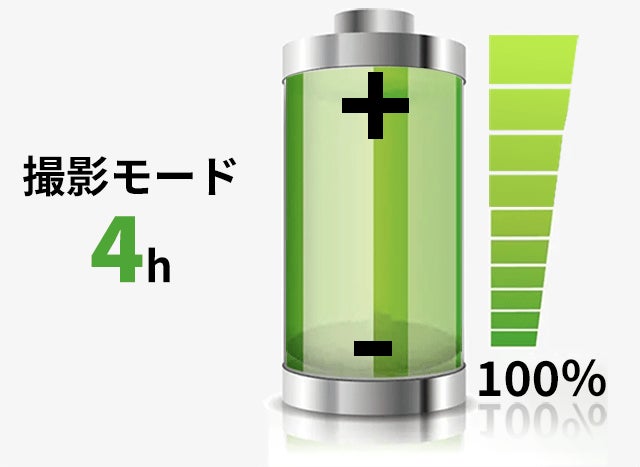 「X5」はコンパクトながら800mAhの大容量バッテリーを搭載しており、録音モードは5h、録画モードは4h稼働可能です。さらに、充電しながら使用可能なので、モバイルバッテリーに接続しながら使用すれば記録中の電源切れの心配はありません。