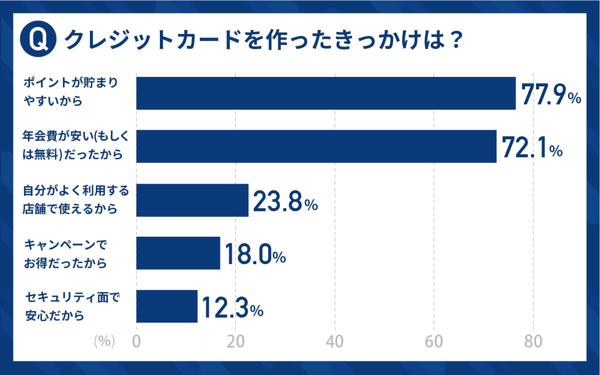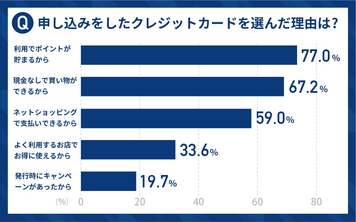 クレジットカードを選んだ理由として最も多かったのは、『利用でポイントが貯まるから』(77.0%)でした。