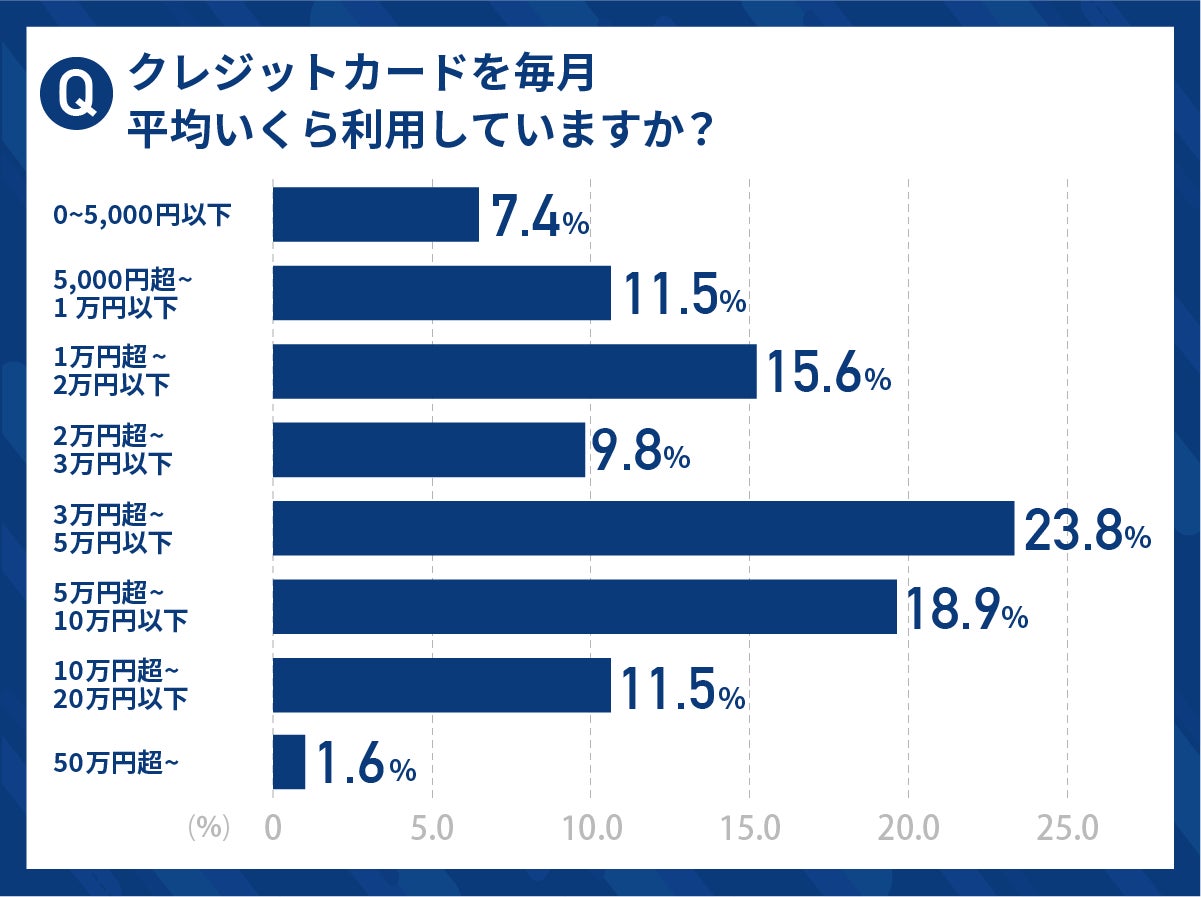 クレジットカードの毎月の平均利用金額は『3~5万円』(23.8%)と回答した方が最も多い結果でした。