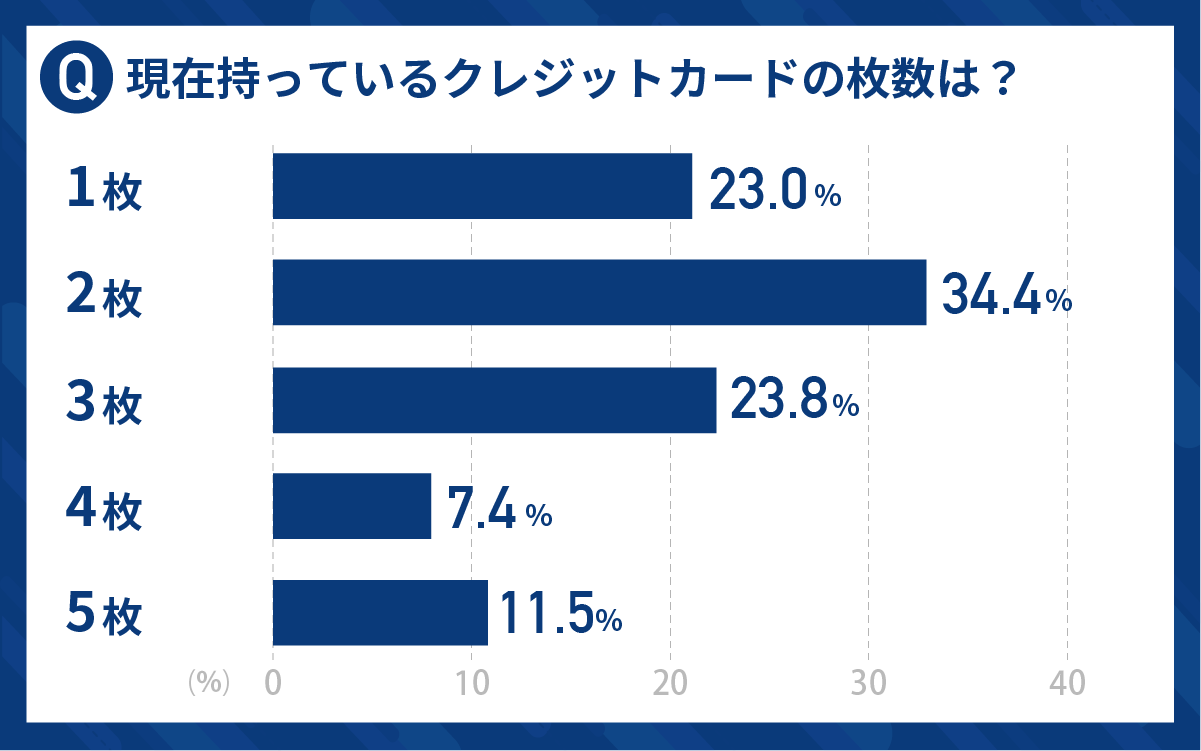クレジットカードの保有枚数を調査した結果では、「2枚」(34.4%)と回答した方が最も多い結果となりました。