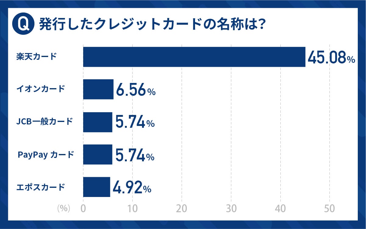 数あるクレジットカードの中でも『楽天カード』(45.08%)を選んだ方が、最多となっていました。