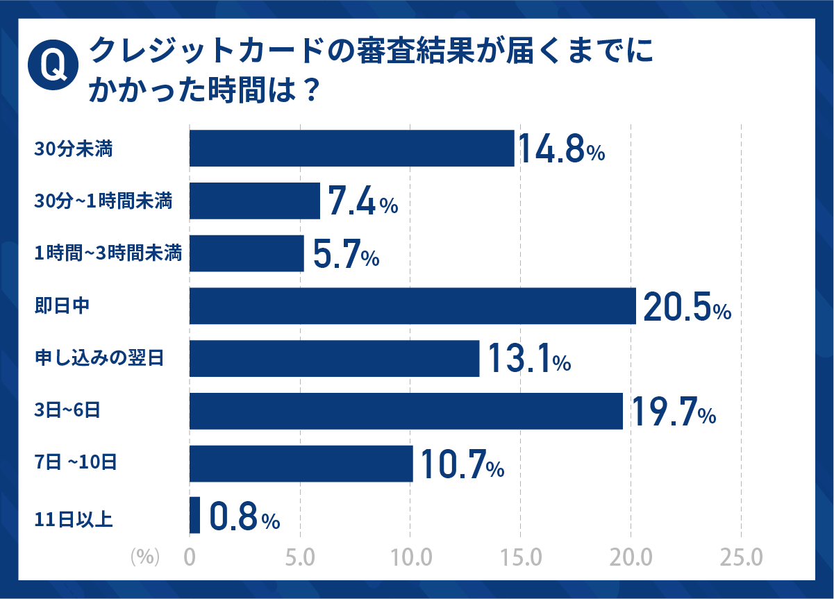 クレジットカードの審査結果はその日のうちに届く場合が48.4%