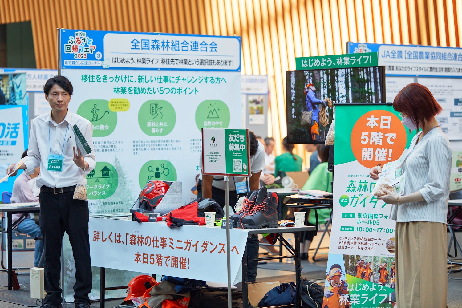 協賛の省庁や企業が出展。農林業団体の活動紹介や、就職支援、新しいライフスタイルの提案など、移住を側面から応援します。